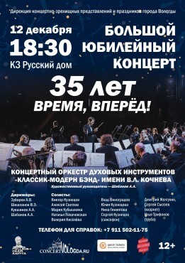 Приходите отпраздновать этот знаменательный юбилей вместе с оркестром, который уже 35 лет воспитывает музыкальный вкус вологжан и дарит городу незабываемые впечатления!