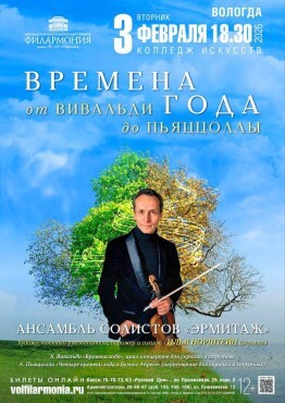 В начале февраля, когда зима раскрывает свою позднюю, задумчивую красоту, ансамбль солистов «Эрмитаж» под управлением дирижера и скрипача Ильи Норштейна приглашает на встречу с двумя легендарными циклами - «Времена года» Антонио Вивальди и Астора Пьяццоллы. Эта двойная программа, полная контрастов и ярких музыкальных красок, станет прекрасным поводом для романтического и интеллектуального вечера в разгар календарной зимы.