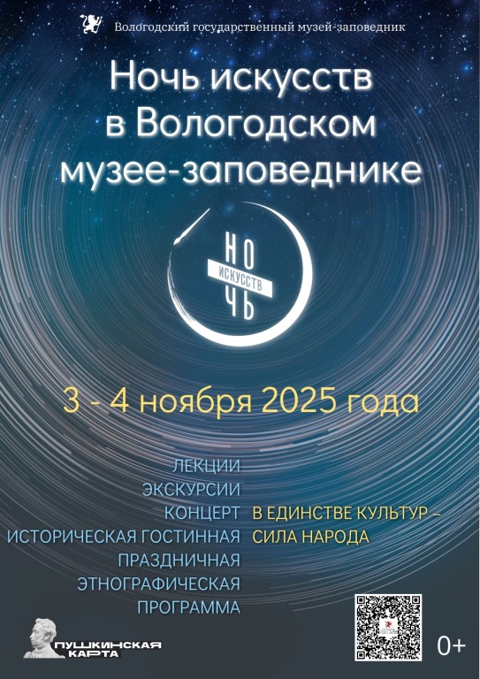 Друзья, приглашаем вас на Всероссийскую акцию «Ночь искусств - 2025» в Вологодский музей-заповедник!