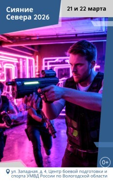 21-22 марта 2026 года в Вологде состоится ежегодное физкультурно‑оздоровительное мероприятие — межрегиональный турнир по лазерному бою Северо‑Западного федерального округа «Сияние Севера 2026». Состязания пройдут в Центре боевой подготовки и спорта УМВД России по Вологодской области по адресу: г. Вологда, ул. Западная, д. 4.