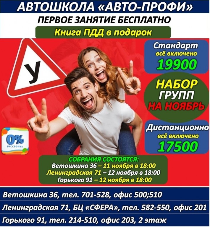 Автошкола Авто-Профи начинает ноябрьский набор на выгодных условиях.