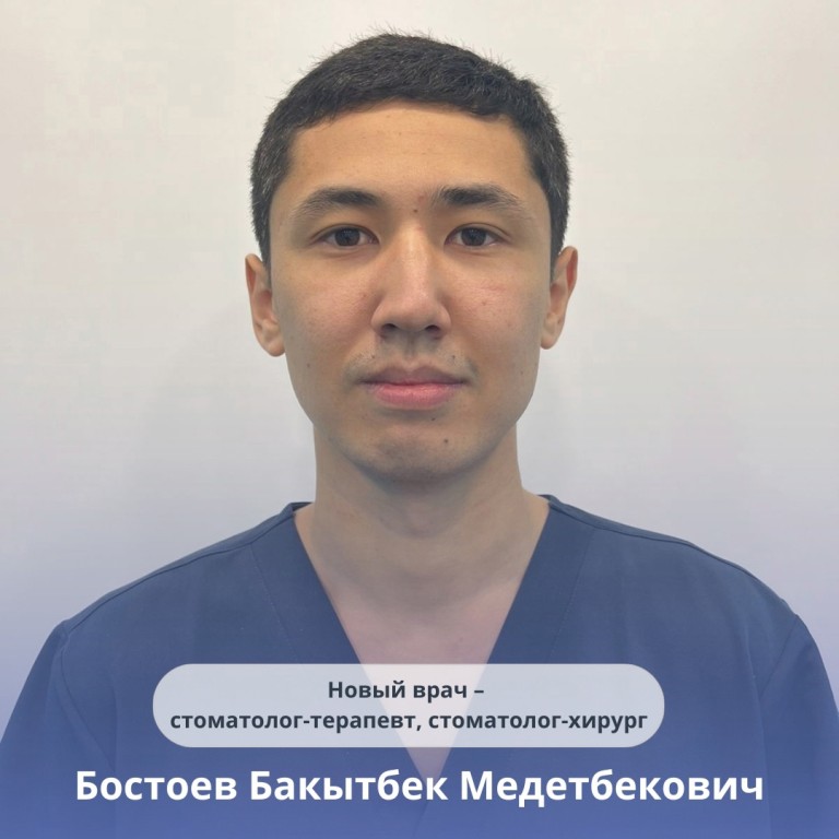 Там же – на Октябрьской, 27 – в клинике «Дентал-Стиль» приступил к работе еще один замечательны специалист. Стоматолог-терапевт и стоматолог-хирург Бакытбек Бостоев поможет вам решить проблемы с зубами.