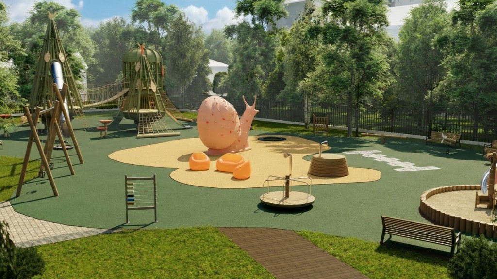 Обновленный сад предложит разнообразные зоны для отдыха детей и взрослых. В числе новинок — детская игровая площадка со скалодромом в виде улитки из полиуретанового покрытия, каруселями, качелями и детским городком. Сохранится и зона для изучения правил дорожного движения. Для взрослых обустроят площадки с большими шахматами и настольным теннисом.