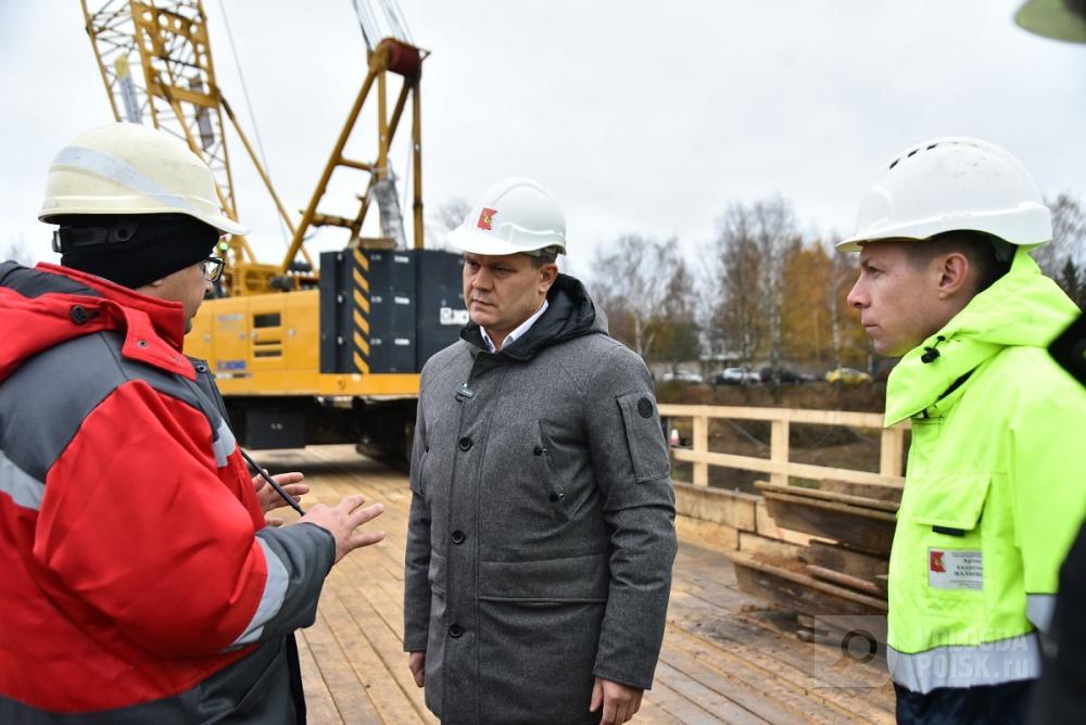 В настоящее время рабочие бетонируют опоры, их будет шесть. За ходом работ наблюдал Мэр Вологды Сергей Воропанов.