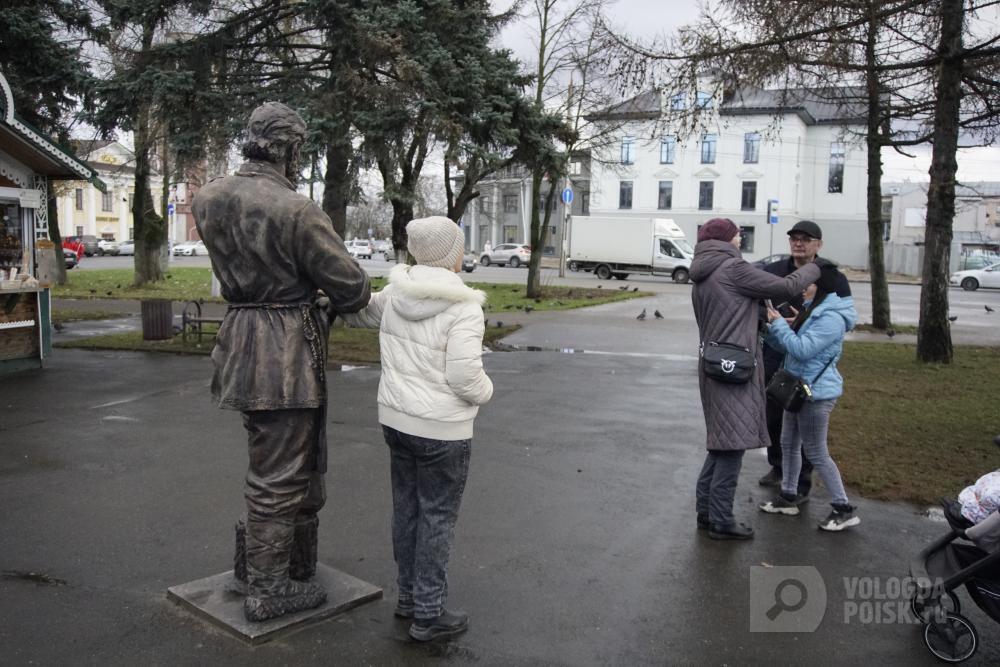 Вологжане фотографируются с новыми бронзовыми скульптурами