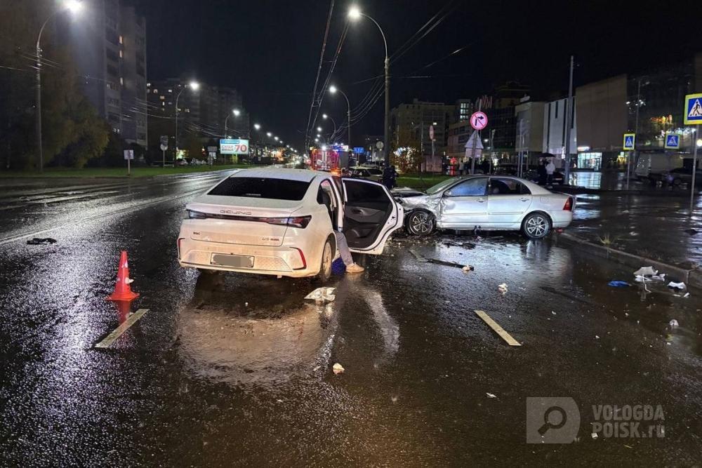 Массовая авария, участниками которой стали сразу три автомобиля, произошла поздно вечером 11 октября в Вологде – у торгового центра «Форум» на улице Ленинградской, 100.