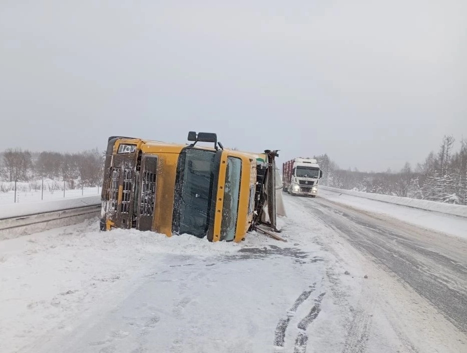 Утро субботы началось с серьезного инцидента на 52‑м километре автодороги Вологда – Тихвин – Р‑21 «Кола» в Шекснинском округе. Около 08:20 водитель тягача Volvo, мужчина 1988 года рождения, не справился с управлением: машину занесло, после чего произошел наезд на дорожное ограждение. Желтая фура вместе с полуприцепом опрокинулась прямо на проезжую часть. По данным УМВД России по Вологодской области, водитель получил травму головы и ушибы; его доставили в больницу для детального обследования. Ситуация осложнилась тем, что на том же участке вскоре случилось еще одно ДТП: водитель тягача КАМАЗ вынужденно остановился перед перевернутой фурой, но в этот момент в него врезался красный Volvo. Хотя в этом столкновении никто не пострадал, оба грузовика получили значительные механические повреждения.