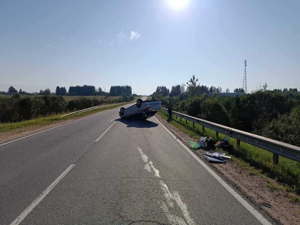Сегодня утром на трассе "Чекшино-Тотьма-Котлас-Куратово" перевернулась иномарка. ДТП случилось около 7 часов, на 20-м километре автодороги в Сокольском округе.
