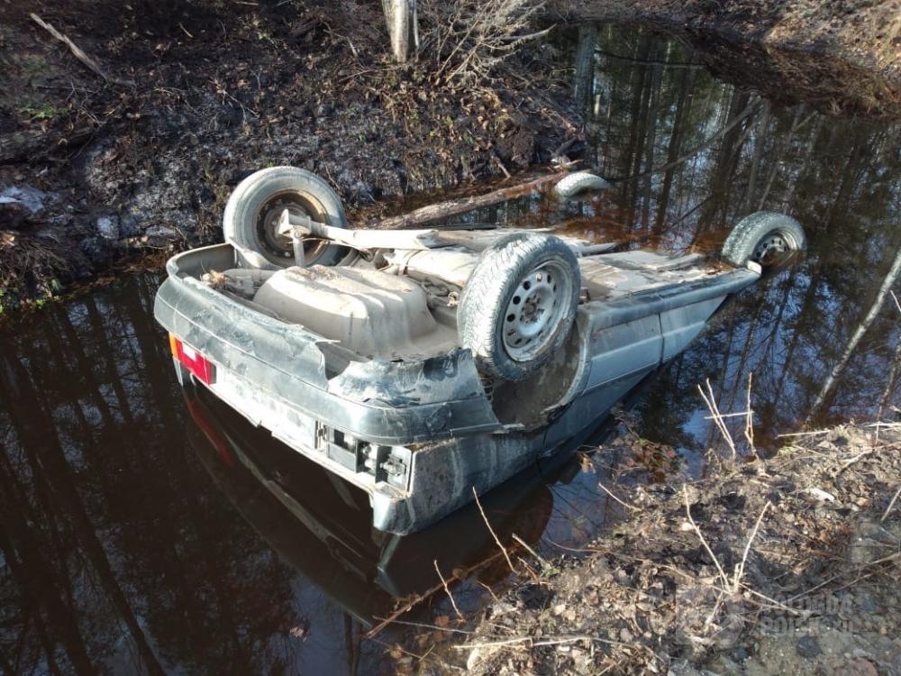 ВАЗ-2114, в котором находились два человека, оказался в кювете, наполненном талой водой, и в аварии погиб один из молодых людей…