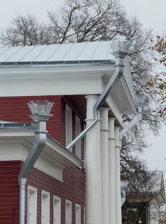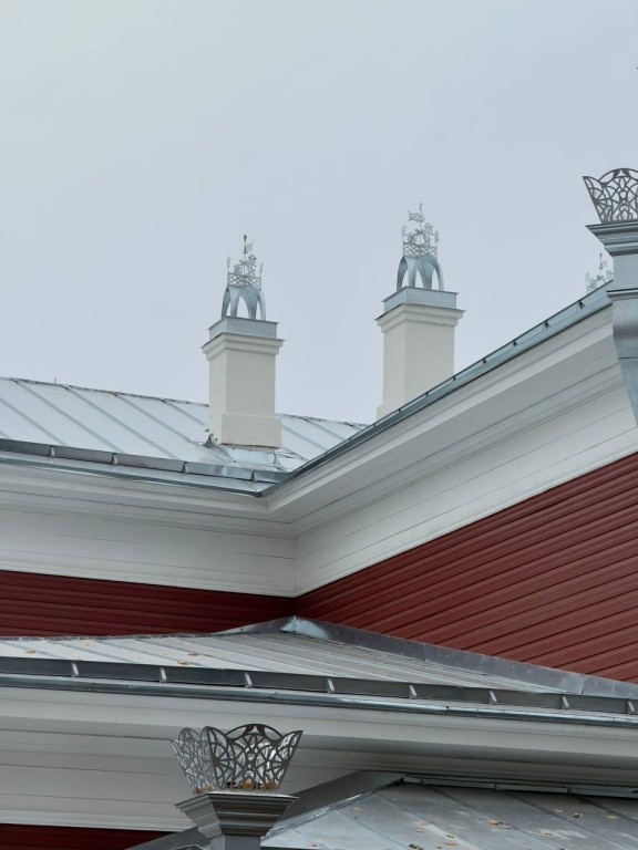 Особое внимание в ходе реставрации уделено декоративным деталям: водосточные трубы и дымовые каналы дома теперь украшены оригинальными элементами.