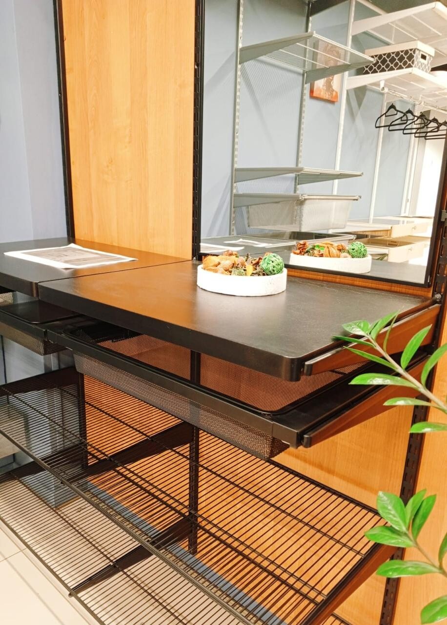 Главный принцип наших решений — модульность и гибкость. Вы можете легко переставлять полки, ящики и другие компоненты, подстраивая конфигурацию под меняющиеся потребности. Это позволяет максимально эффективно использовать каждый сантиметр площади, будь то просторная гардеробная или компактная ниша.