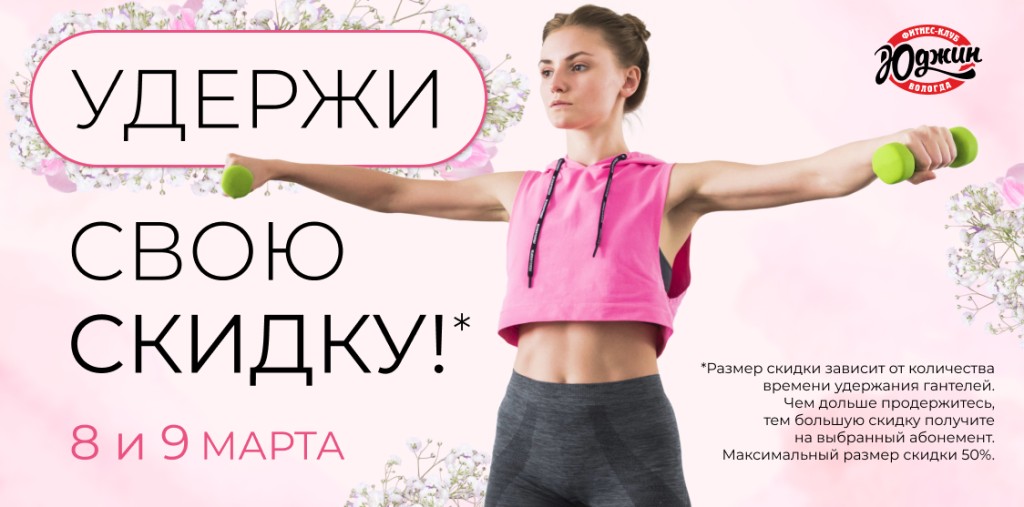 А потому 8 и 9 марта клуб приглашает всех целеустремлённых девушек на рецепцию, чтобы принять участие в фитнес-челлендже «Удержи свою скидку».