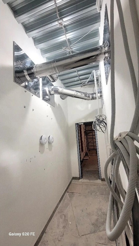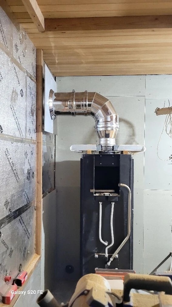 Для монтажа дымоходов использовали трубы из нержавеющей стали марки 304 толщиной 0,8 мм и утеплитель из керамического волокна, способный выдерживать температуру свыше 1000°C. Этот материал не оседает со временем и гарантирует отличную теплоизоляцию.