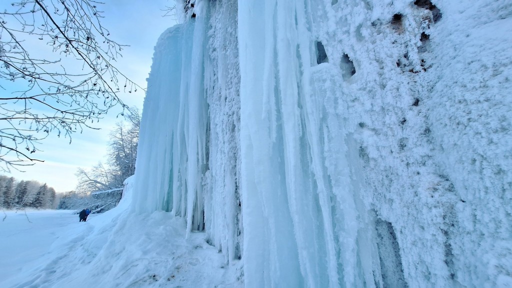 Жительница Нюксенского округа Татьяна Колесникова обнаружила и показала вологжанам удивительное зимнее чудо — многоуровневую ледяную формацию, напоминающую застывший водопад. Необычную находку она сделала во время семейной прогулки.