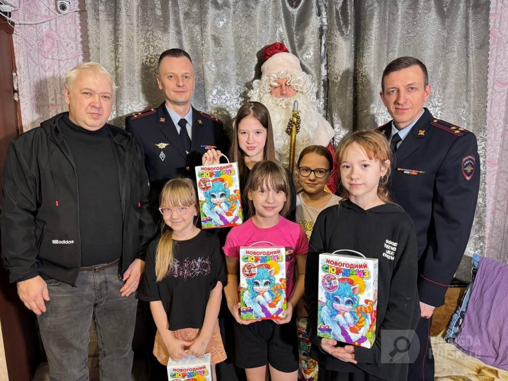 Полицейский Дед Мороз поздравил в Вологде семью, где папа в одиночку воспитывает 10 детей