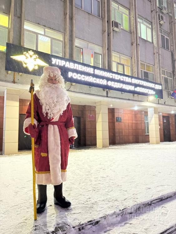 Председатель Общественного совета при УМВД России по Вологде Николай Шалаевский в костюме Деда Мороза поздравил детей с наступающими праздниками и, конечно же, не забыл вручить подарки.