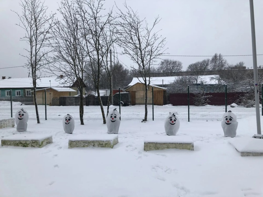 В Грязовецком районе ученицы нарядили туи в снеговиков