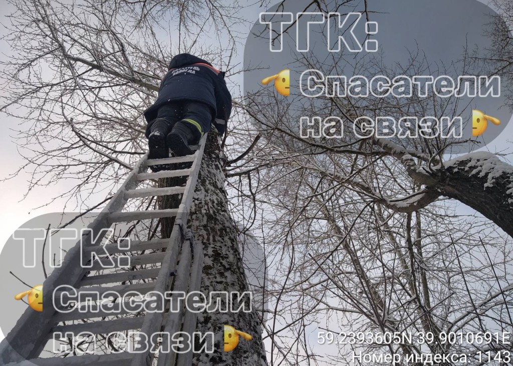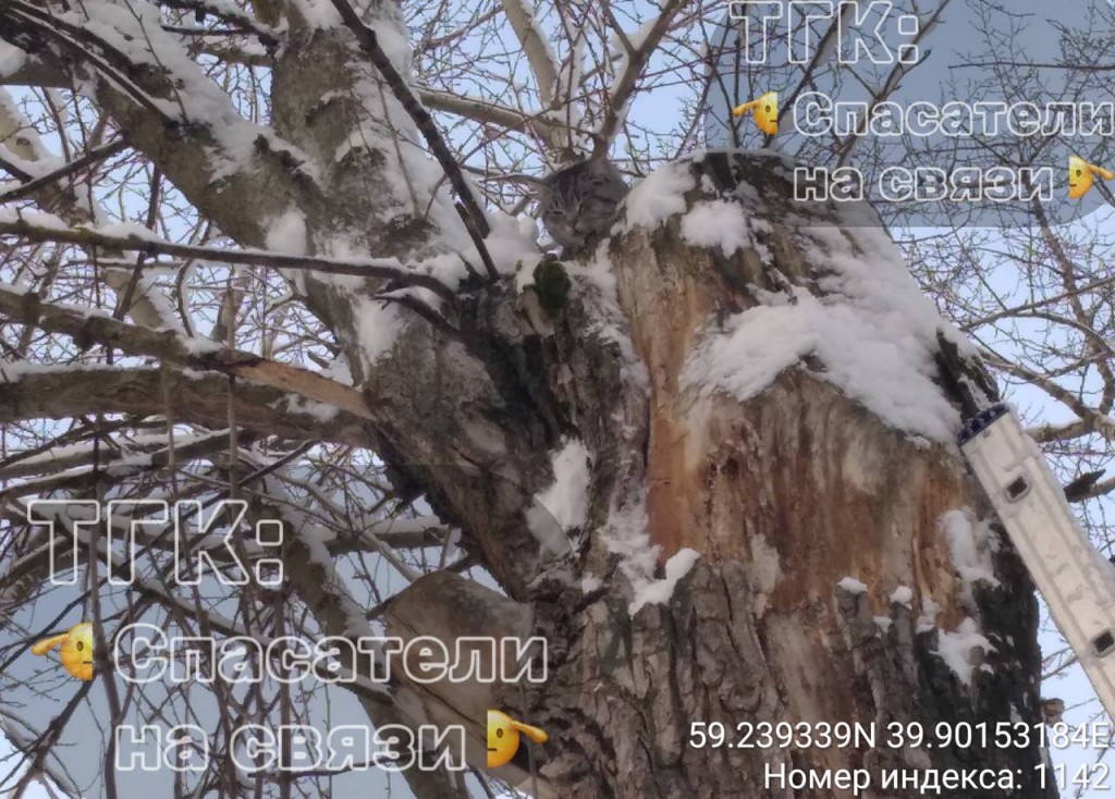 В Вологде кот провел ночь на дереве, пока его не сняли спасатели