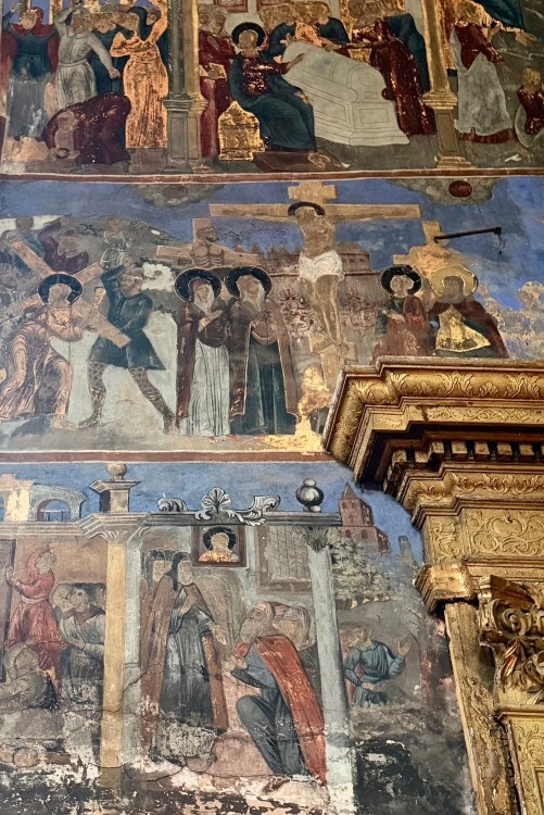 По данным специалистов, настенная живопись храма имеет сложную историю: за столетия она неоднократно поновлялась и частично переписывалась. В четверике сохранились слои начала XVIII века, выполненные в традиционной темперно-клеевой технике, тогда как алтарная часть относится к более позднему периоду — концу XVIII – началу XIX века.