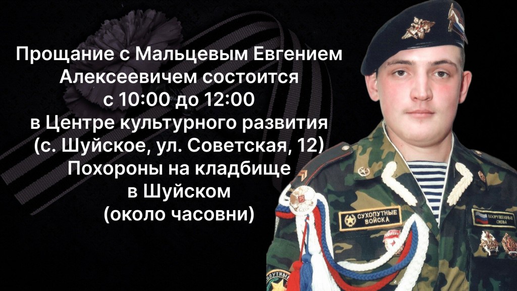 В Междуречье прощаются с Евгением Мальцевым. Он родился в селе Шуйском в 1986 году. В 2004 закончил местную среднюю школу. После армии мужчина перебрался в Вологду и работал на кабельном заводе, где занимался производством медного силового кабеля.