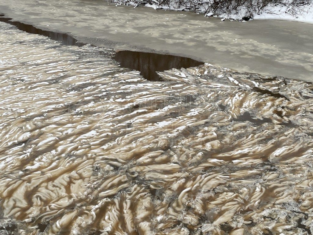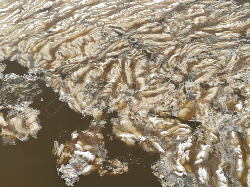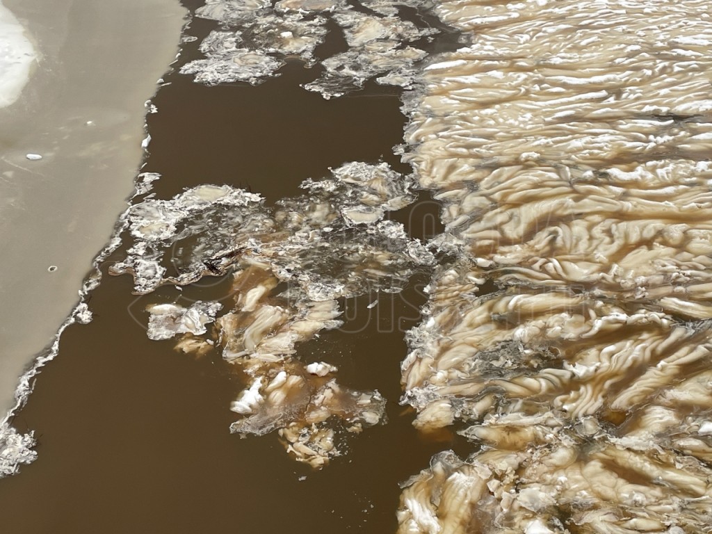 Необычная пена на глади воды движется с верховий реки, со стороны водозабора.