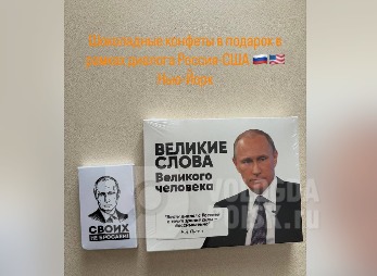 Представитель Кремля Дмитрий Песков заявил, что выбор этих сувениров был инициативой самого Кирилла Дмитриева. На одной из оберток, в частности, известная фраза Владимира Путина «Своих не бросаем», на другой – «Вести диалог с Россией с точки зрения силы — бессмысленно». Конфеты в Нью-Йорк переговорщик привез в качестве дипломатического подарка. Правда, некоторые высказывания на обертках звучат несколько угрожающе. Шоколад горький немного.