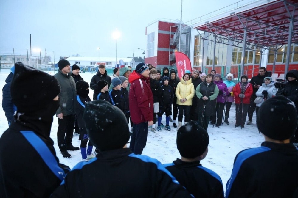 Спортобъект открытого типа построили на базе ФОКа «Спутник» по ул. Северной, 63. Вместе с воспитанниками спортивных секций, школьниками и взрослыми сделали символический круг по беговой дорожке.