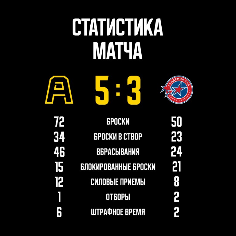 - 17:18 – 1:1 «Академия СКА» Алексей Углов (Макар Масиянский, Вячеслав Васильев).