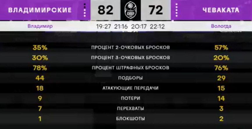 Несмотря на поражение во Владимире вологодская команда сохранила за собой первую строчку в турнирной таблице «Суперлиги».