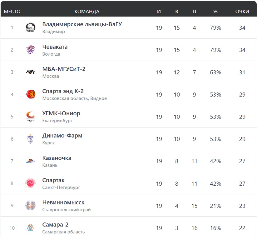 - 13 ноября 2025 МБА-МГУСиТ-2 - «Чеваката» 57:65 (24:13, 18:15, 10:15, 5:22).