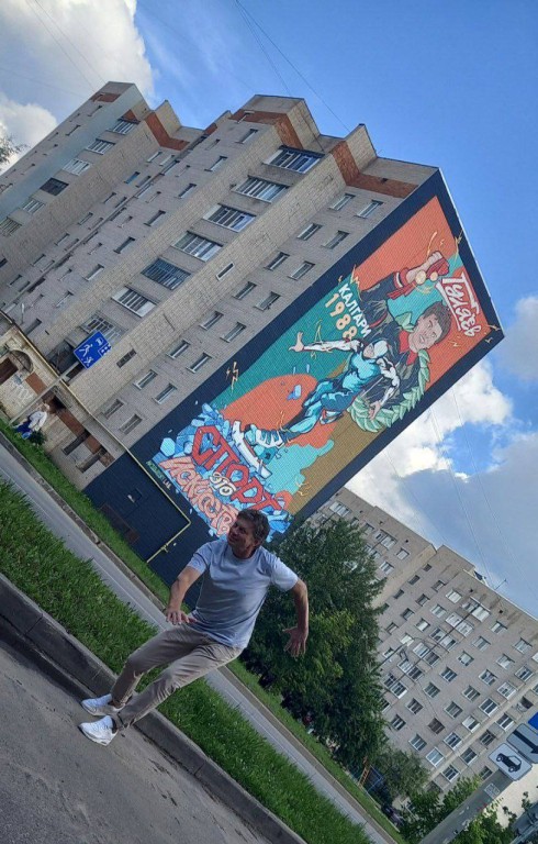 Олимпионик сфотографировался на фоне мурала, написанного в его честь