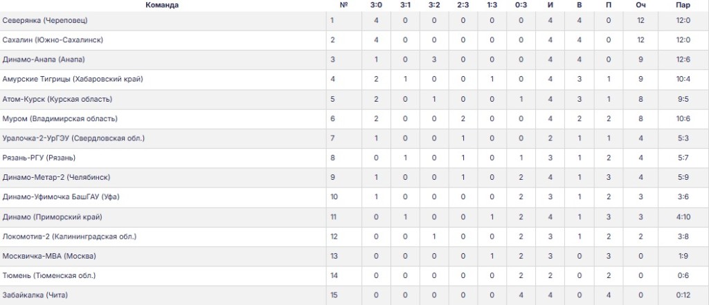 По итогам первого тура чемпионата России череповецкая команда набрала 12 очков и делит первое место в турнирной таблице Высшей лиги «А» с клубом «Сахалин» из Южно-Сахалинска.