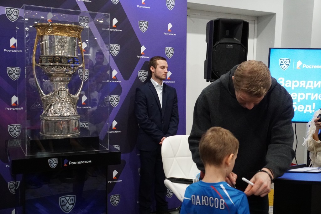 Прославленный хоккеист Сергей Андронов привез главный приз Континентальной хоккейной лиги – Кубок Гагарина