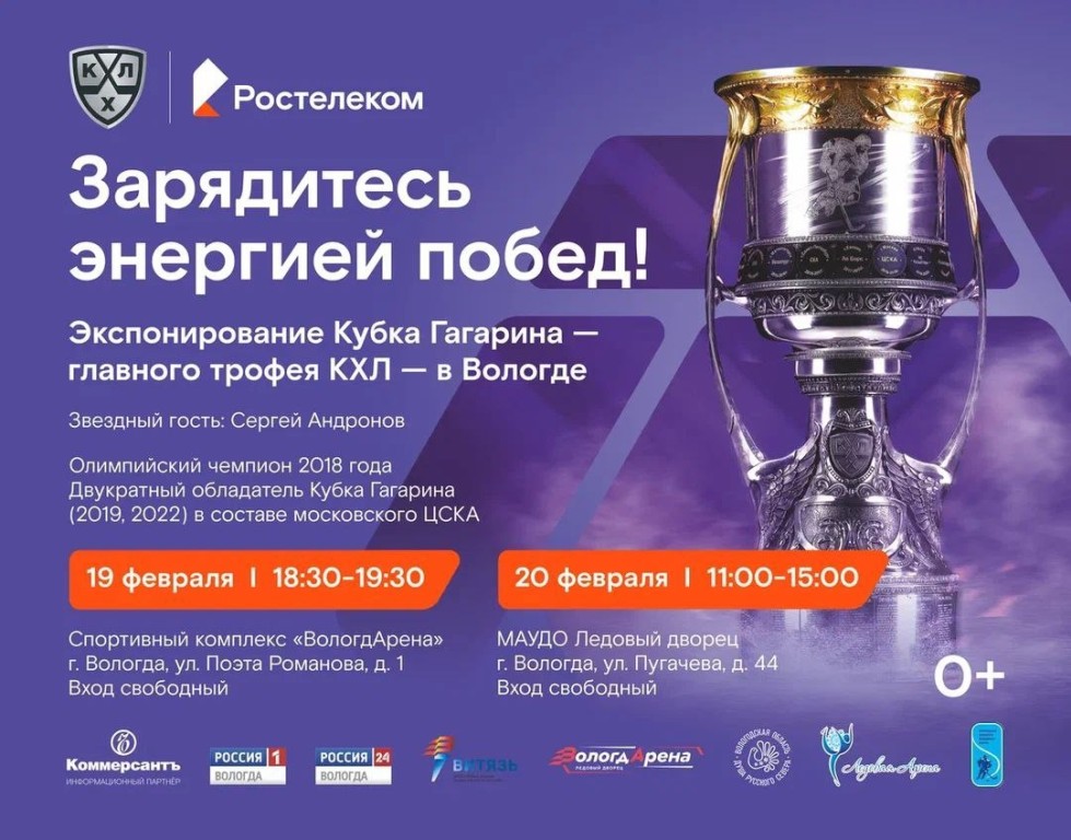 В областной столице состоялось яркое спортивное событие, собравшее десятки юных поклонников хоккея. Спортивный комплекс «ВологдАрена» стал местом встречи с прославленным нападающим, олимпийским чемпионом и двукратным обладателем Кубка Гагарина Сергеем Андроновым. Знаменитый спортсмен привез в город главный приз Континентальной хоккейной лиги, вызвав неподдельный восторг у подрастающего поколения вологодских игроков.