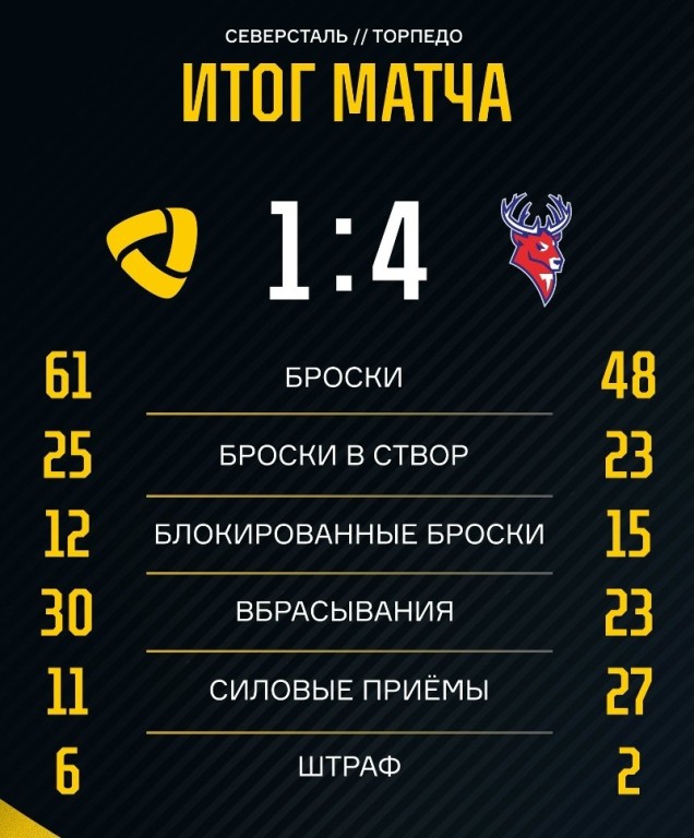 Вторая встреча этой серии «Северсталь» - «Торпедо» состоится в среду, 25 марта и также в Череповце. Стартовый свисток в 19:30. Обзор этой игры, как обычно, на портале Вологда-поиск.