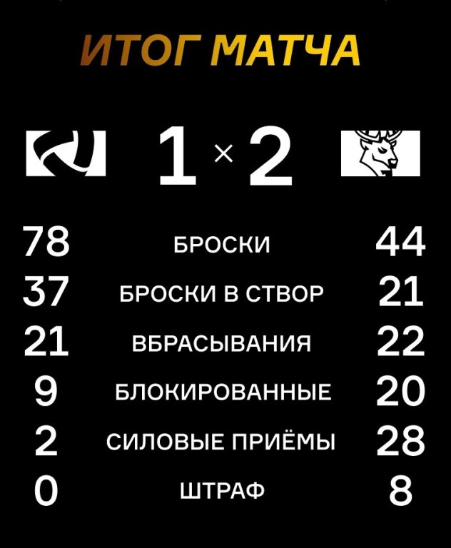 Отыграв в формате 5х4, команды, как будто бы, решили, что ничья по такой игре – это неплохо и перенесли дальнейшие разборки на второй период: броски – 18/16, в створ – 8/7, блокированные – 4/6, отборы – 3/2, потери – 3/2, перехваты – 3/5, время в атаке – 05:51/03:11.