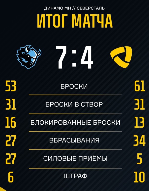 - 17:06 – «Динамо»-Мн 2 минуты командный штраф (нарушение численного состава).