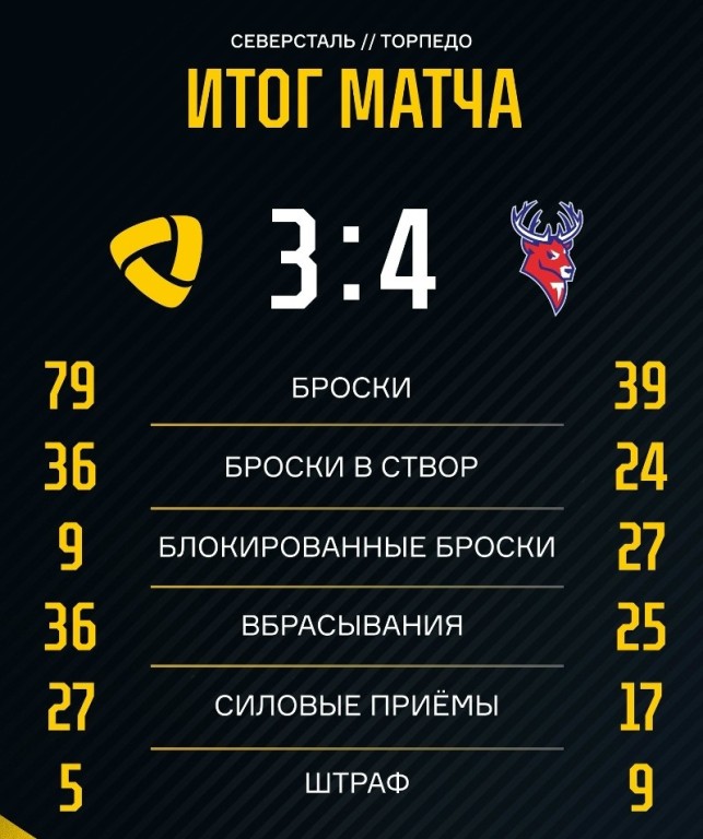 - 23 марта «Северсталь» - «Торпедо» 1:4 (0:0, 0:2, 1:2).