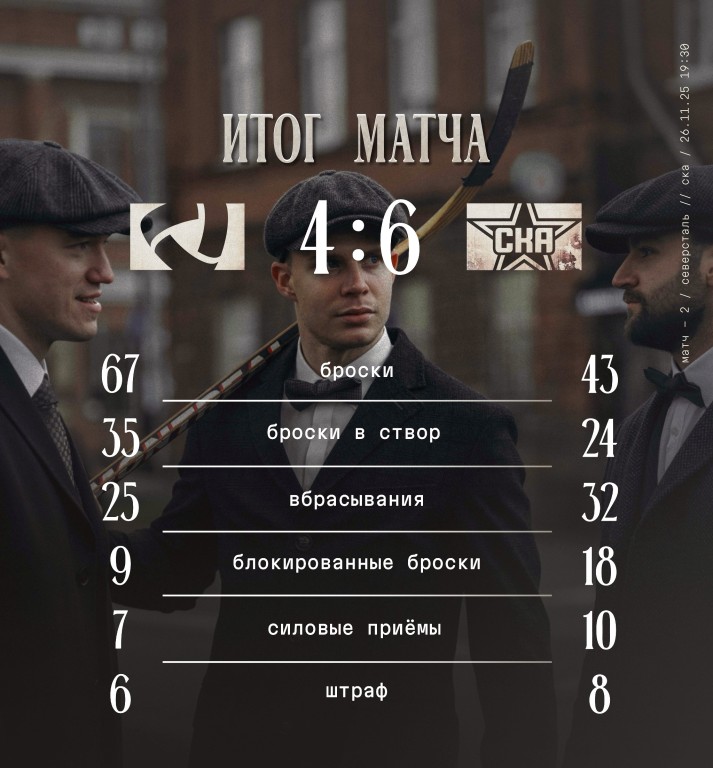 - 19:26 – СКА 2 минуты Матвей Поляков (подножка).