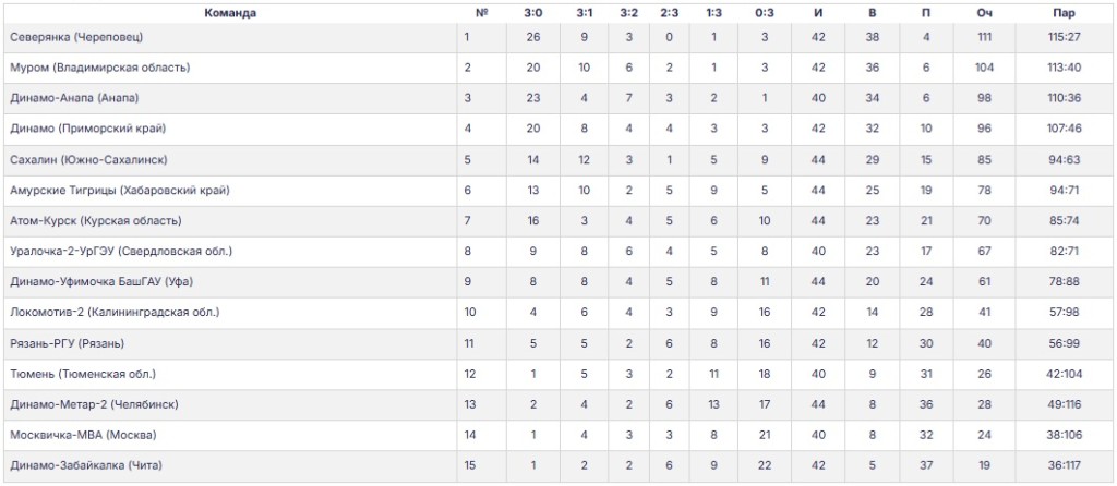 После 43 матчей череповецкая команда единолично возглавляет турнирную таблицу Высшей лиги «А» с отрывом от ближайших преследователей в девять очков.