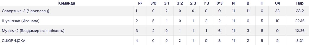 - 16 января «Северянка-3» - «Шуяночка» 3:0 (25:18, 25:12, 25:11).
