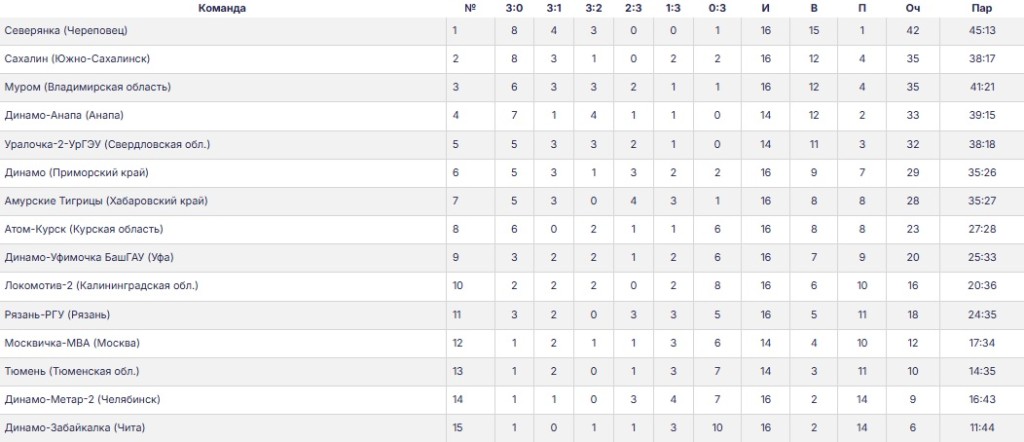 - 19 ноября «Северянка» - «Динамо-Забайкалка» 3:0 (25:9, 25:18, 25:17).