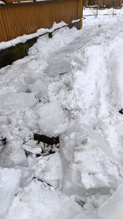 - Посмотрите, даже козырек подъезда разрушился. Возвращалась домой поздно вечером, только зашла на ступеньки, и полетели все разом с крыши огромные льдины! Ещё несколько секунд и я сейчас уже никуда не писала: просто убило бы на раз, – сообщила нам вологжанка.